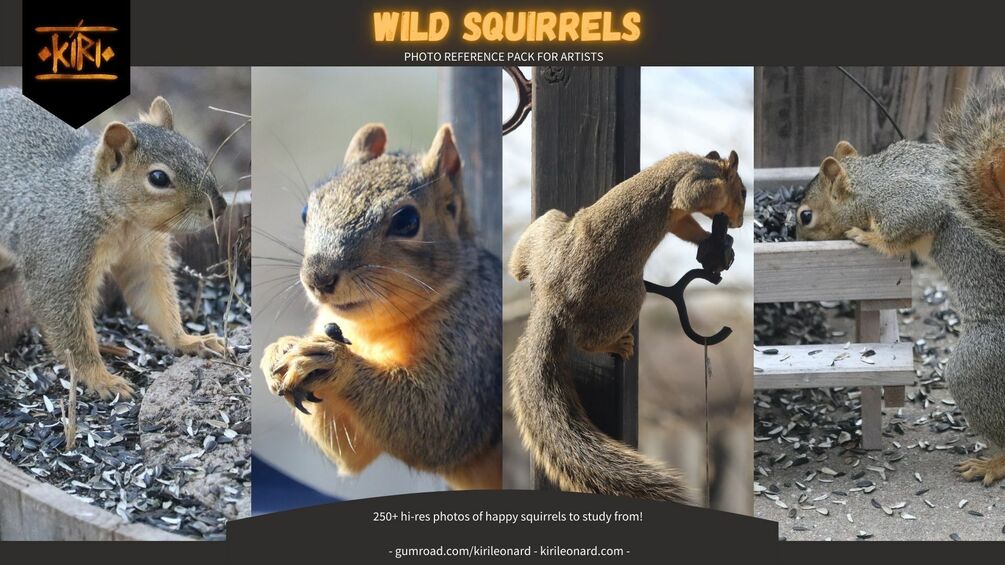 In this reference pack, you get over 250+ hi-res photos of squirrels from all different angles and different poses.